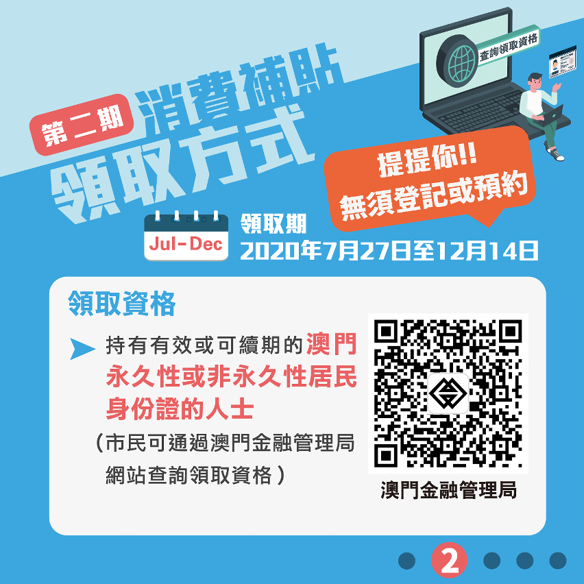 第二期5,000元的消費補貼明(1)日起可使用,已加值或領卡的居民可於明日起持卡消費;至於第一期尚有餘額的消費卡,將於明日凌晨零時清零,經濟局於本週末、週日(8月1日及8月2日)在全澳各區開設140個服務點,方便居民持卡加值。