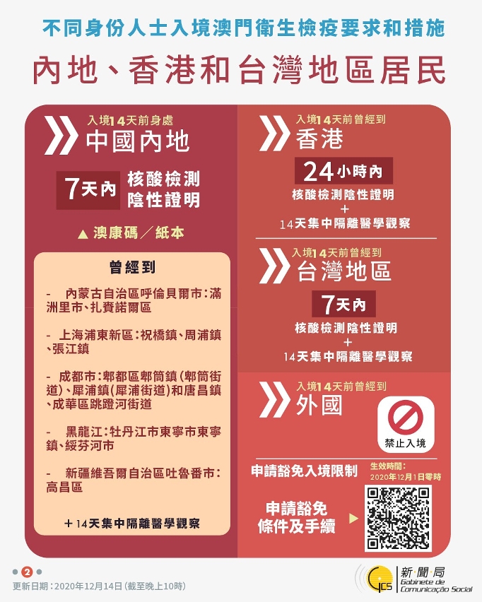 【圖文包】最新入境澳門衛生檢疫要求和措施