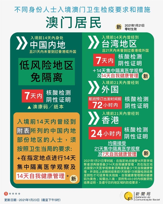 【圖文包】2021/01/23最新入境澳門衛生檢疫要求和措施