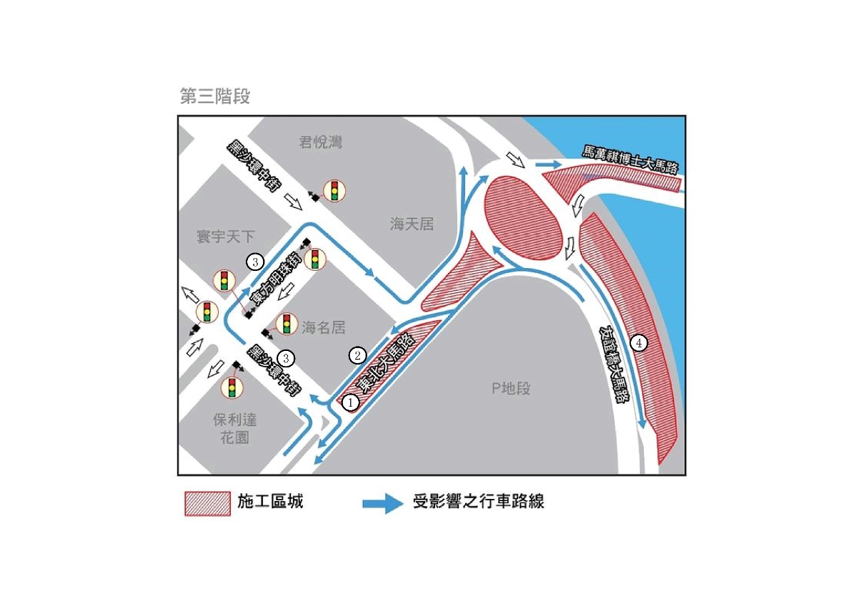 本次的交通改道措施,受現場施工環境的限制,行車條件將較為複雜,建議市民提早出門以熟悉路況,並遵守現場交通警員的指揮及安排。