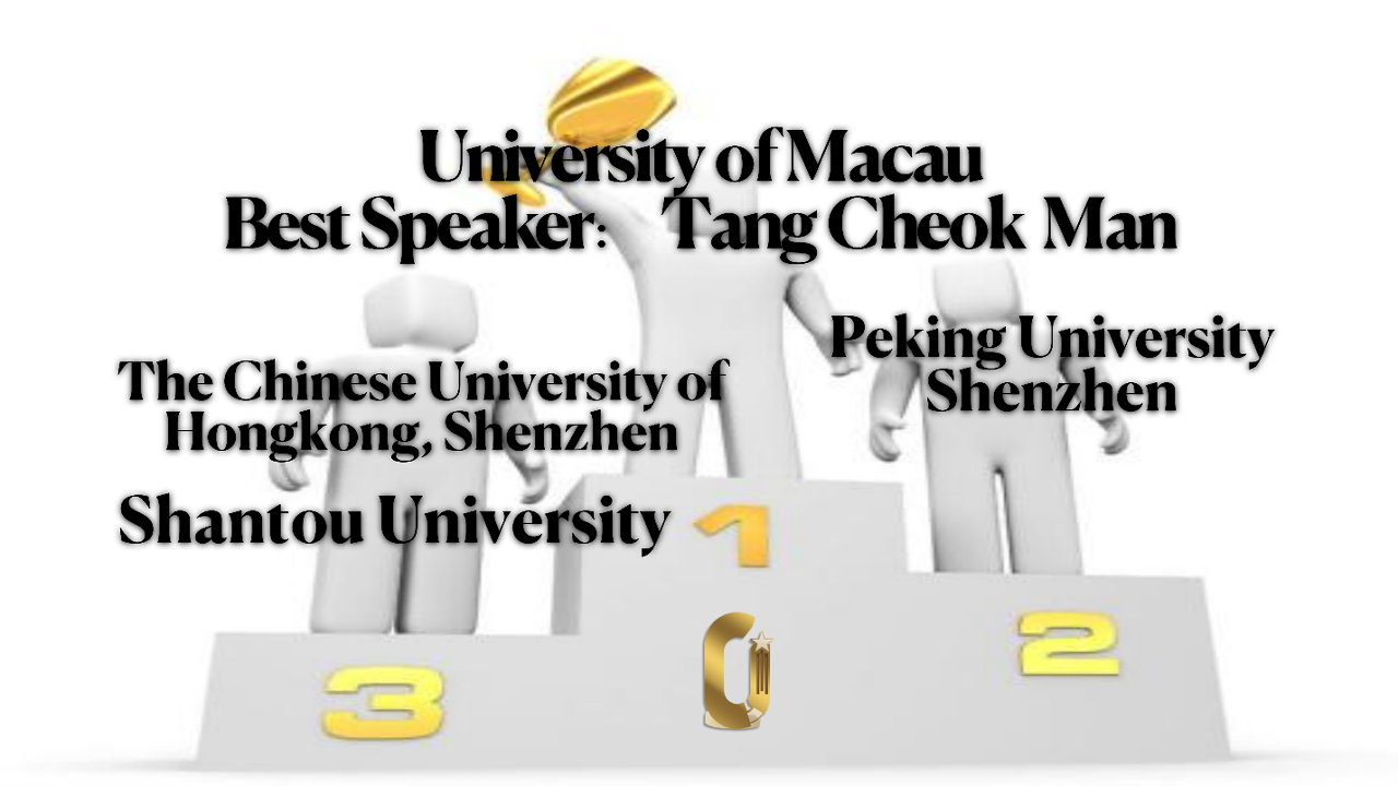 今屆華南區比賽共吸引了北京大學深圳研究院、武漢大學、中山大學、香港中文大學(深圳)等60支高校隊伍參賽,參賽選手分別就政治、經濟、民生、文化等話題展開歷時兩天共71場的激烈辯論。澳大英語辯論隊經過五輪激烈的辯論,以首名成績晉級總決賽。在總決賽中,澳門大學以出色的辯論技巧及經驗擊敗北京大學深圳研究生院、香港中文大學深圳、汕頭大學等強隊後,榮獲冠軍。來自澳大社會科學學院、榮譽學院、呂志和書院的周詠怡及社會科學院、榮譽學院、滿珍書院的唐卓文並列獲得“全場最佳辯手”的稱號,而唐卓文更獲得“總決賽最佳辯手”。