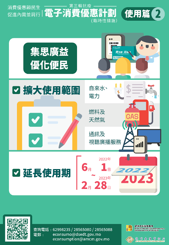 電子消費優惠僅可用於在澳門購買貨品或服務,但不得用於博彩場所、境外旅遊服務、跨境交通服務、醫療服務、金融機構等法規訂定的特定場所或用途。