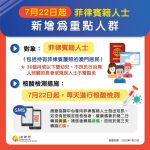 【圖文包】7月22日起菲律賓籍人士新增為重點人群