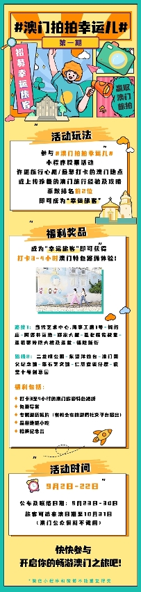 “澳門拍拍幸運兒” 招募活動,為旅客提供全新禮遇行程及免費導賞,將遊歷過程制作成短片,以旅客第一身體驗角度,宣傳澳門旅遊特色,吸引更多旅客來澳,助力澳門旅遊業復甦。
