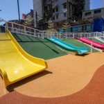 兒童遊樂場引入新穎的遊樂設施,包括澳門半島首個戶外沙池,創設與朋輩互相協助、自由遊玩的環境,讓小朋友在社區亦能享受親沙戲水樂趣,從堆沙遊戲中展現創造力。為保障幼齡兒童的使用安全,五歲或以下的幼童須在家長陪同下方能進入沙池。同時,為控制沙池人流,開放初期須預約。為保障沙池品質,除每日開放前檢查清潔外,每月亦會進行一次沙池護理,期間暫停開放。遊樂場內亦設有滑梯區、人造草山丘等親子共融遊具,劃分不同年齡區域,適合三至十二歲兒童鍛鍊身體協調性及平衡感。另一組含攀爬元素兼具適度挑戰性的高空遊樂設施,則讓大齡兒童在遊戲中學習如何安全玩樂及鍛鍊體能。市政署已安排人員在場維持秩序,冀家長和子女配合工作人員指示,注意安全。