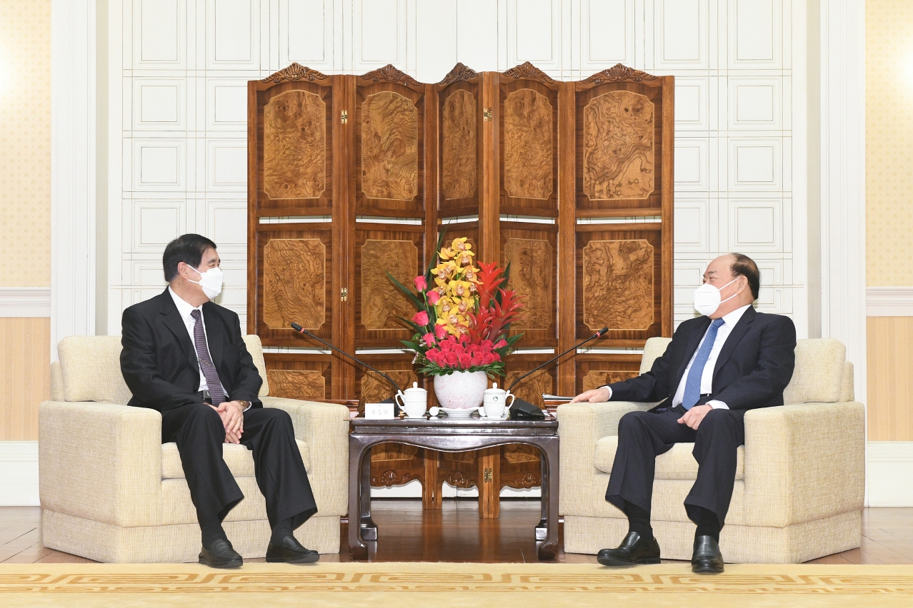 行政長官首先歡迎黃志賢會長一行訪澳並介紹特區最新的經濟發展情況。他指出,新冠疫情對本澳經濟造成沉重打擊,中央政府對澳門一直給予大力支持。特區政府在加強疫情防控的同時,推出系列惠民及支持經濟復甦的措施,同步紮實推進橫琴粵澳深度合作區建設,推動四大產業與深合區相關產業的協同發展,為更好融入國家發展大局作關鍵部署。同時,澳門將繼續發揮“一國兩制”的制度優勢,為促進兩岸關係的良性發展而努力。