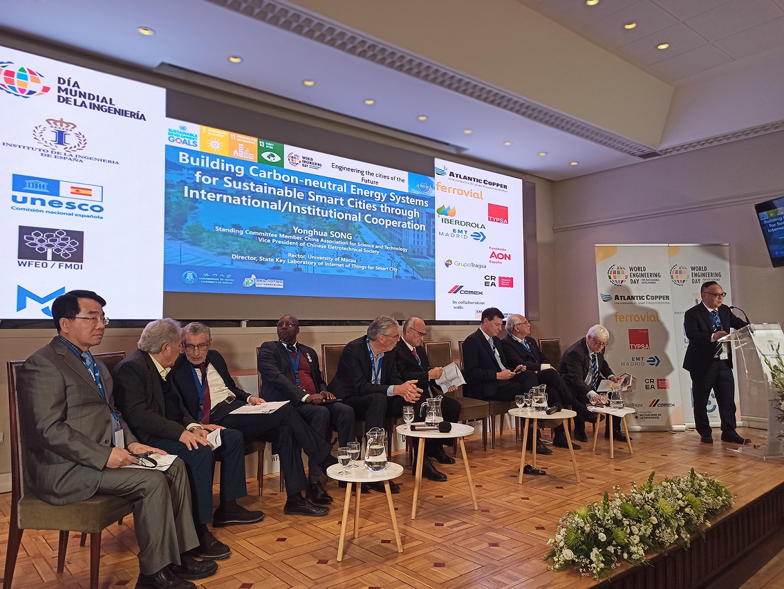 中國科協常委、澳門大學校長宋永華應邀在西班牙舉行的“工程創造城市未來”國際論壇上,以《開展國際及機構合作,建設基於碳中和能源系統的可持續智慧城市》為題發言,當中以澳門為例分析了城市能源消耗與碳排放結構的特點與發展趨勢。